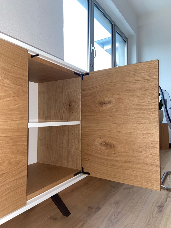 Die innenliegende Schublade, die indirekte Beleuchtung und das formschöne Gestell machen das Stück zu einem echten Hingucker.